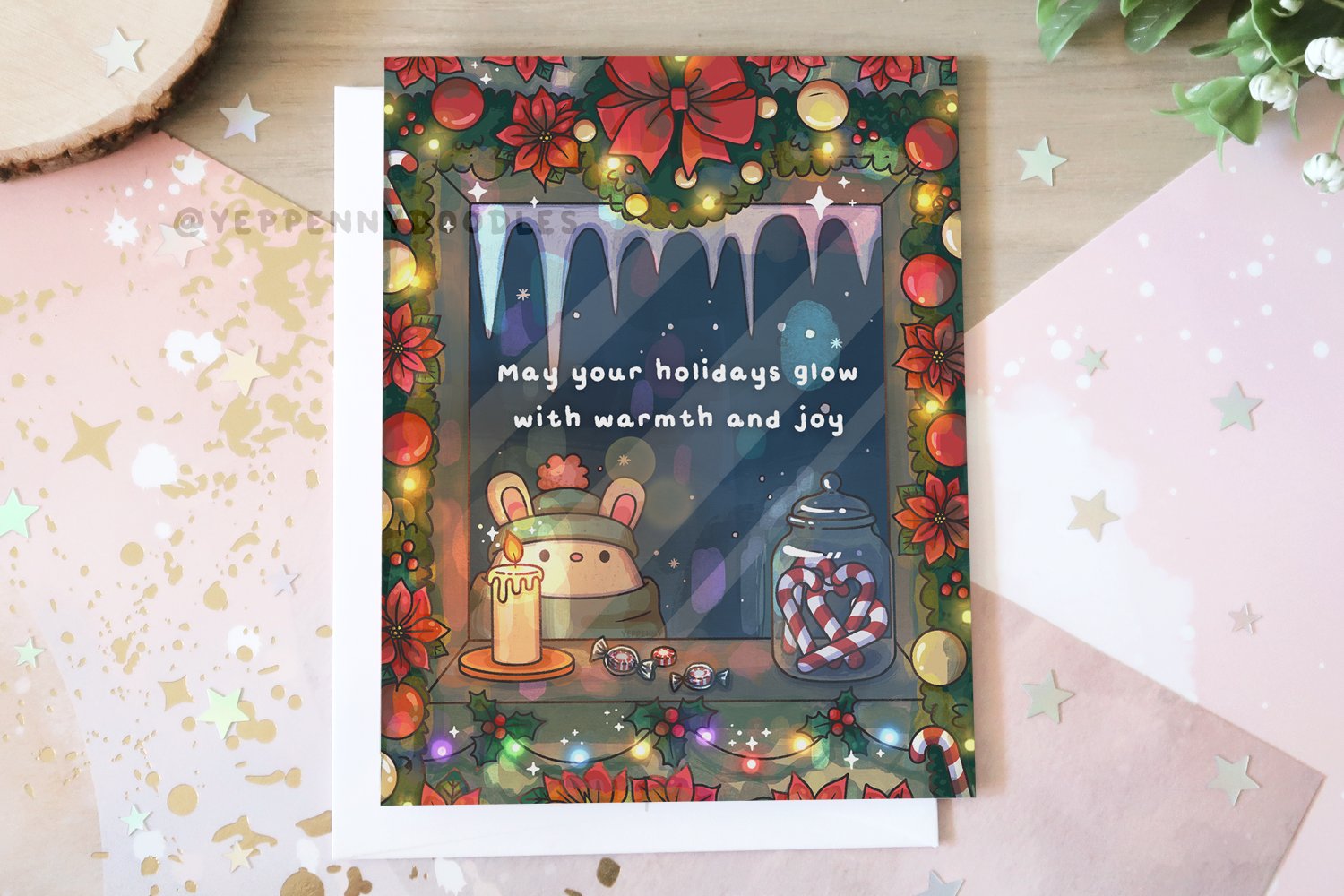 A Bunny's Holiday Glow - Greeting Card by © Yeppenny Doodles.