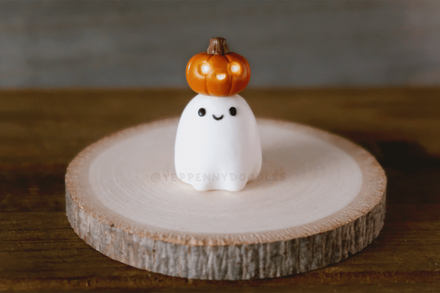 Jack-o-lantern Ghost - Miniature Clay Sculpture by © Yeppenny Doodles.
